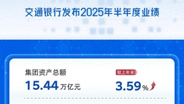 8月29日,交通银行发布2025年半年度经营业绩。数据显示,报告期末,集团资产总额达到15.44万亿元,较上年末增长3.59%。报告期内,集团实现营业收入1333.68亿元、归属于母公司股东净利润460.16亿元,同比分别增长0.77%、1.61%。